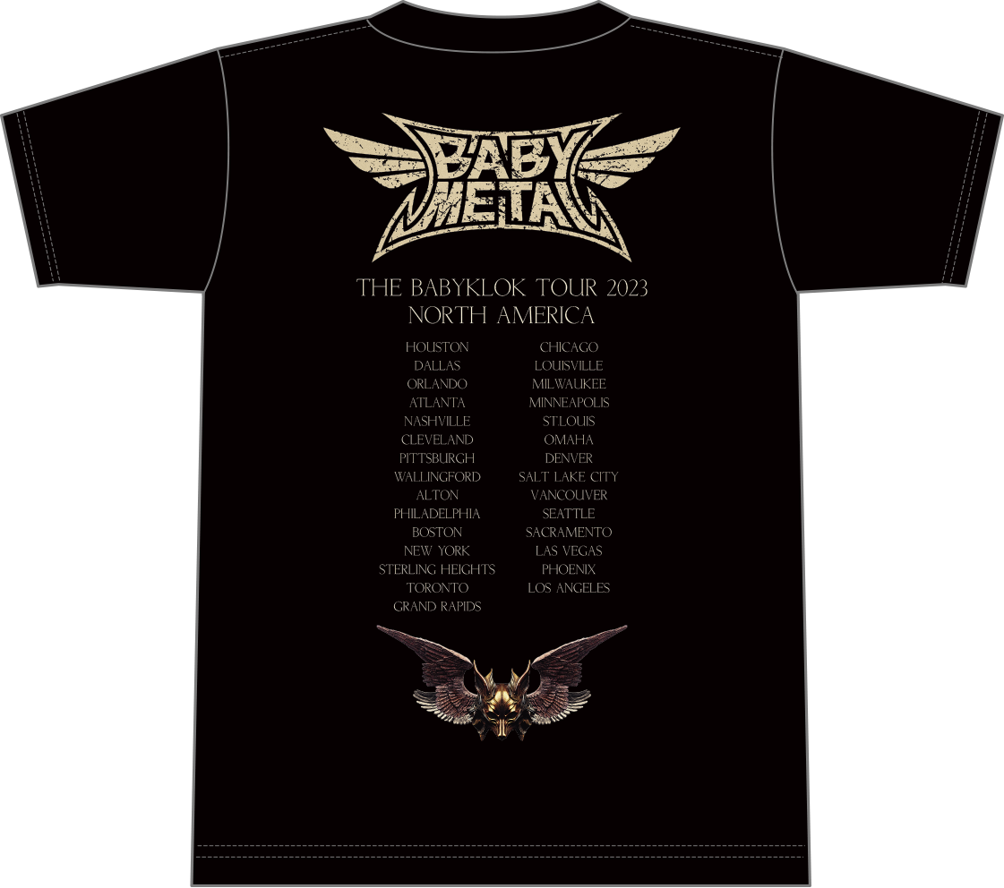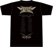 Fox Archways Tour 2023 design featuring U.S. and Canada cities is printed on a 100% cotton, unisex black tee.