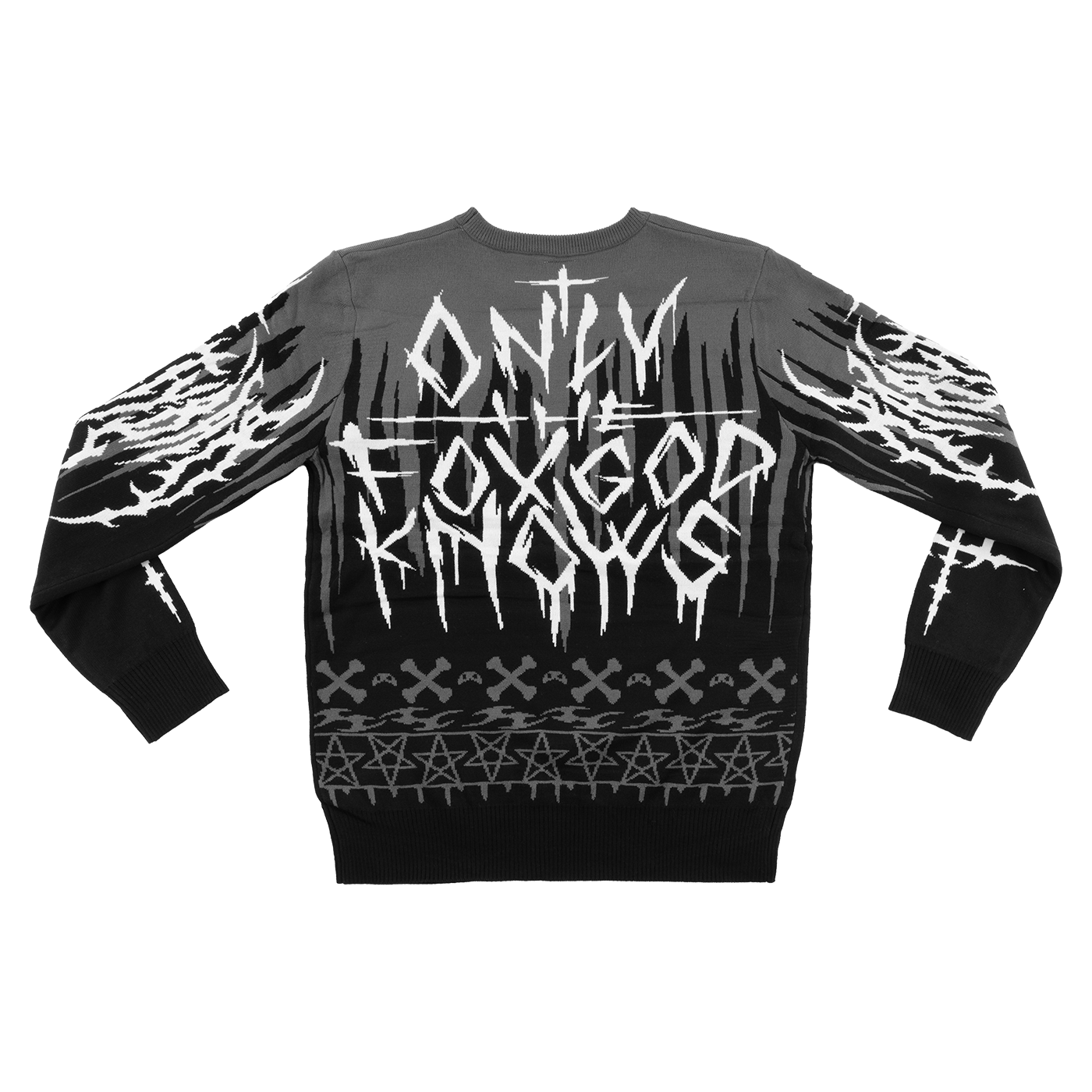 Exclusive Limited Edition knit sweater with ONLY THE FOX GOD KNOWS artwork on the front and back
